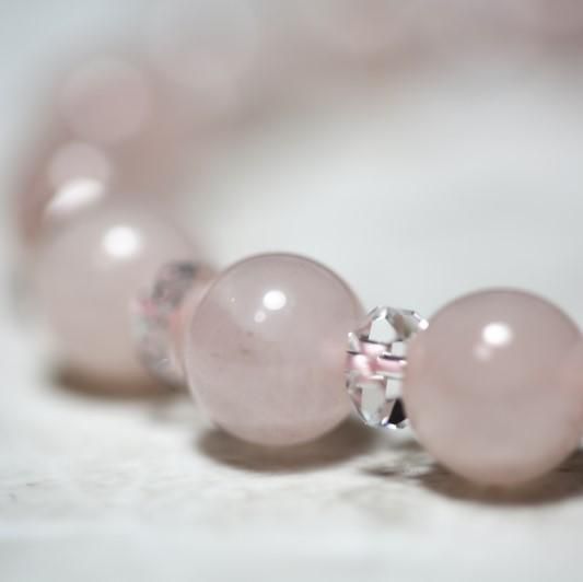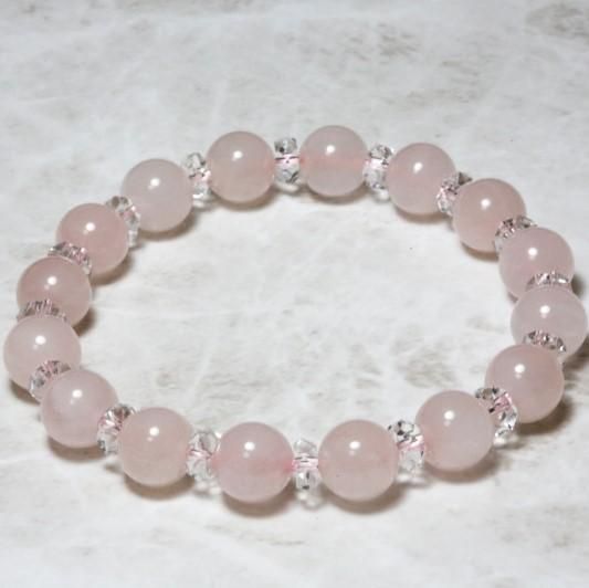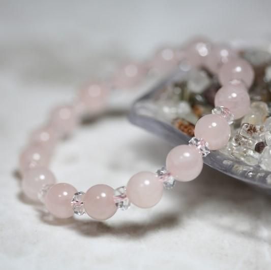 写真はイメージです。ブレスレットのサイズはローズクォーツ・ボタンカット水晶の増減で調整します。天然石の数・デザインが若干異なる場合がございます。