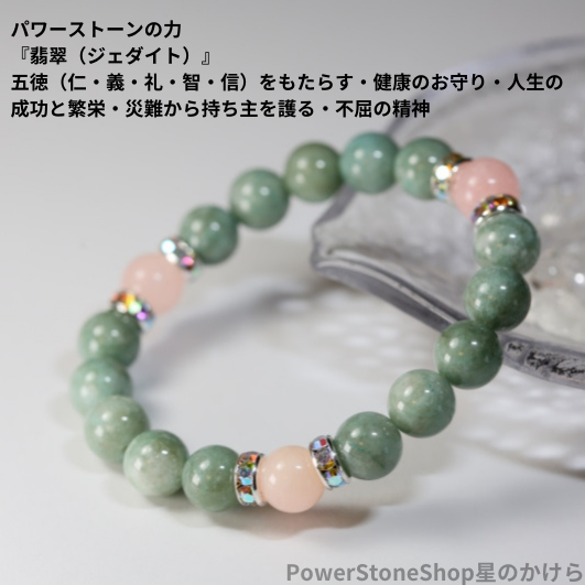 写真はイメージです。ブレスレットのサイズは翡翠の増減で調整します。天然石の数・デザインが若干異なる場合がございます。