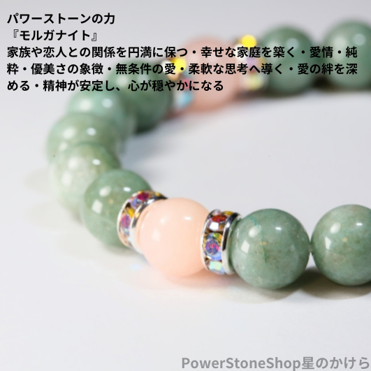 モルガナイトは、今ある関係をより深く、より良いものにするためのエネルギーがあると言われ、信頼関係を構築し、愛する人との絆をより深め、愛し愛されるような人物へと成長できるように導いてくれとされています。恋愛をすることが苦手だったり、いつも長続きしないという方が、身に付けると、自分が欲する愛情を一方的に求めるだけでなく、相手にとめどなく与えるというパワーを授けてくれるとも言われています。