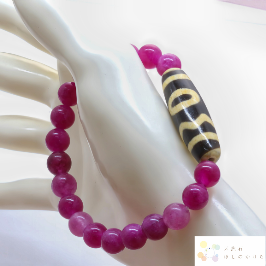 チベット仏教で「聖なるお守り」として珍重される一眼水波天珠(いちがんすいはてんじゅ)と、鮮やかな発色が魅力のピンクトルマリンを組み合わせた特別なブレスレット