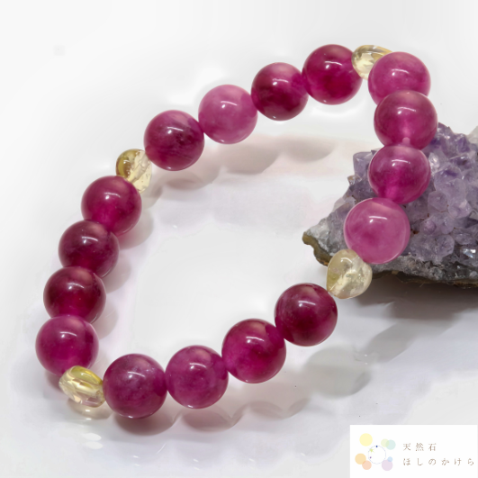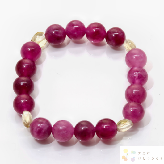 着色した天然石(パワーストーン)、特に濃い色味のパワーストーンは、お風呂やプールなど水場でのご使用はお避けください。染料等が落ちる場合があります。